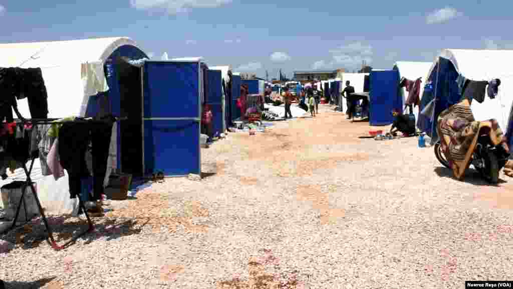 ئاوارەکانی عەفرین لە کەمپـێکی ئاوارەیی لە ناوچەی شەهبا