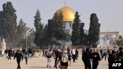 فەلەستینییەکان بەردبارانی ئەفسەرە ئیسرائیلییەکان دەکەن و ئەمانیش کە کەلوپەلی بەرەنگاربوونەوەی ئاژاوەیان هەڵگرتووە، گوللەی پلاستیکی و بۆمبی دەنگی و گازی فرمێسک ڕژێنیان بەکارهێناوە لە مەیدانی مزگەوتی ئەلئەقسا.