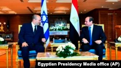 بەسام رازی، وتەبێژی سەرۆکایەتی وڵاتی میسر دەڵێت "عەبدولفەتاح ئەلسیسی، سەرۆکی میسر لە هاوینەهەواری شەرم ئەلشەیخ لەسەر دەریای سوور، پێشوازی لە نافتالی بێنێت کرد. ئەم سەردانەش بە مەبەستی وتووێژکردن بووە لەسەر هەوڵەکان بۆ بوژاندنەوەی پرۆسەی ئاشتی."