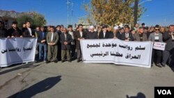 سەرۆکی یەکێتی مامۆستایانی هەرێمی کوردستان لە لێدوانێکیدا بۆ دەنگی ئەمەریکا دەڵێت دەستێوەردانی سیاسی لە خۆپیشاندانی مامۆستایانی ناڕازی هەیە و بانگەشەی ئەوە دەکات دەشێت "خەڵکی تر" پارەی پاس و هۆتێل و هاتوچۆی نوێنەری مامۆستایانی ناڕازی بۆ بەغدا لە ئەستۆگرتبێت.