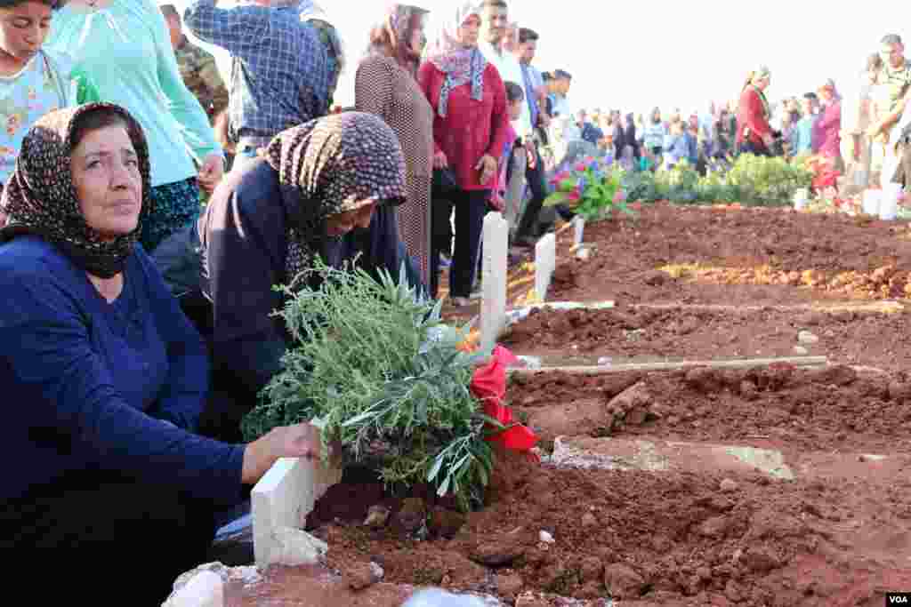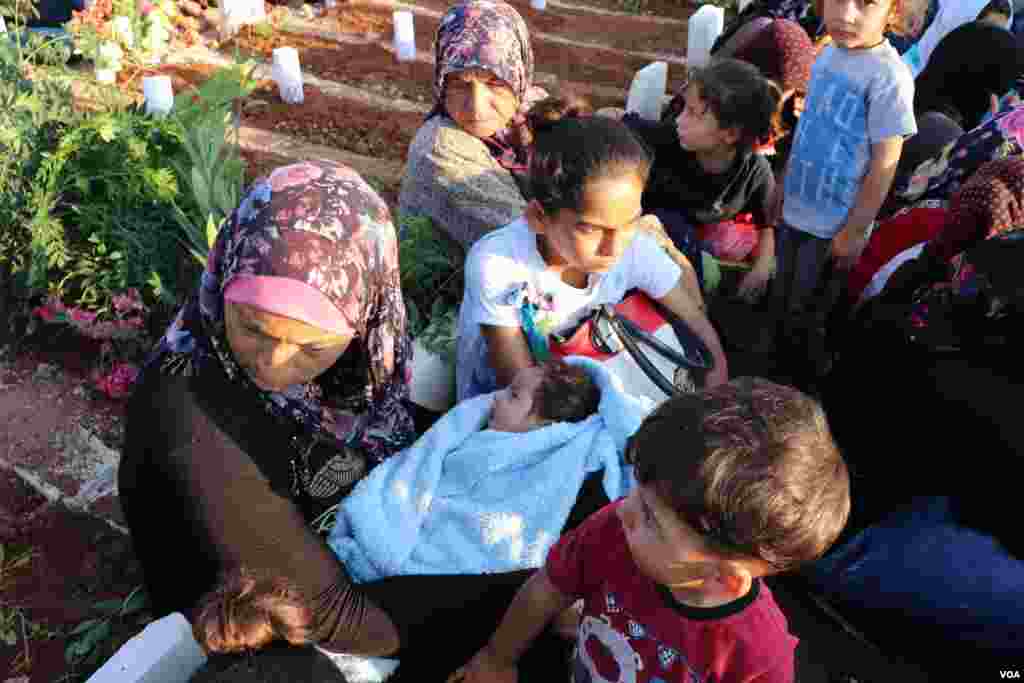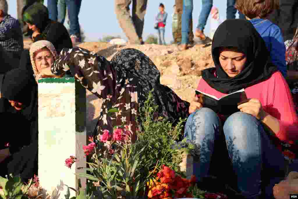 ئاوارەکانی خەڵکی عەفرین کە لە ناوچەی شەهبا لە کەمپی ئاوارەیەتیدا ژیان بەسەر دەبەن، ڕۆژی سێشەممە ڕێکەوتی 21 ی مانگی هەشتی ساڵی 2018 کە یەکەم ڕۆژی جەژن بوو ڕوویان لە گۆڕستانی شەهبا کرد.