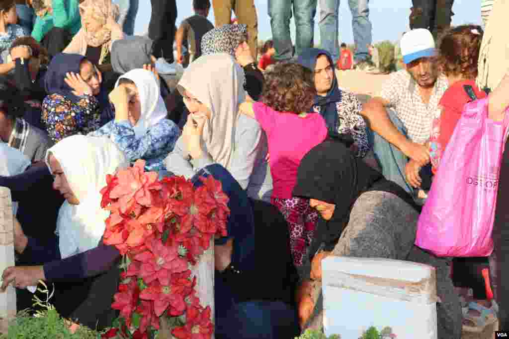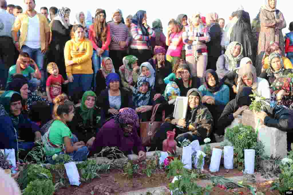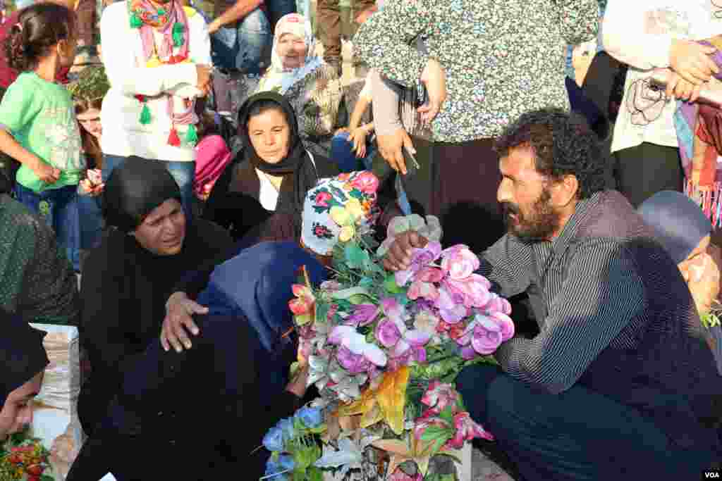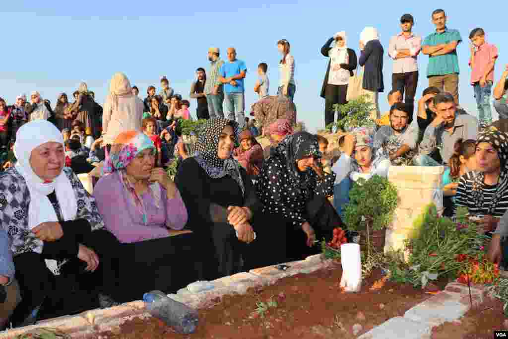 ئاوارەکانی خەڵکی عەفرین کە لە ناوچەی شەهبا لە کەمپی ئاوارەیەتیدا ژیان بەسەر دەبەن، ڕۆژی سێشەممە ڕێکەوتی 21 ی مانگی هەشتی ساڵی 2018 کە یەکەم ڕۆژی جەژن بوو ڕوویان لە گۆڕستانی شەهبا کرد.
