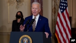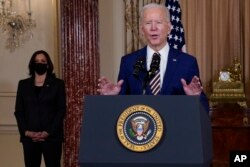 سەرۆک بایدن بەر لەوەی لە بارەی سیاسەتی دەرەوەیی بەڕێوەبەرایەتیـیەکەی وتار پـێشکەش بکات، قسەی بۆ دیپـلۆماتان و کارمەندانی وەزارەتی دەرەوەی ئەمەریکا کرد و گوتی: