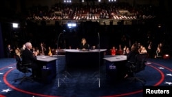 شەوی چوارشەممە یەکەم و داویەمین دیبەیتی نێوان مایک پـێنسی تەمەن 61 ساڵ و کامڵا هێرسی تەمەن 55 ساڵ بوو کە لە هۆڵێکی زانکۆی یوتا لە شاری سەڵت لەیکی ویلایەتی یوتا بەڕێوەچوو و ڕۆژنامەوان سوزن پەیج، تەمەن 69 ساڵ، بەرپـرسی ئۆفیسی واشنتنی ڕۆژنامەی USA Today، دیبەیتەکەی بەڕێوەبرد.