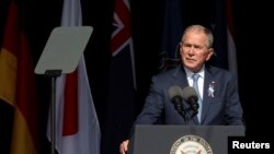 جۆرج دەبلیو بوش، کە سەرۆکی ئەمەریکا بوو لە کاتی هێرشەکانی 11 ی سێپتەمبەری 2001، ڕۆژی شەممە ڕایگەیاند کە هێرشەکانی ئەلقاعیدە ئیرادەی بەهێزی گەلی ئەمەریکایان نیشان دا کە چۆن لە کاتی تەنگانە و چرکەساتی مێژووی بە یەکگرتوویی دەمێننەوە و داکۆکی لە بەها مرۆییەکانیان دەکەن.