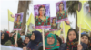 ژنە عەفرینییەکانی کە ئاوارەی هەرێمی شەهبا بونە پشتگیری لە چالاکییەکانی مانگرتنی پەرلەمانتاری هادەپە لەیلا گوڤەن دەکەن.