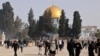 فەلەستینییەکان بەردبارانی ئەفسەرە ئیسرائیلییەکان دەکەن و ئەمانیش کە کەلوپەلی بەرەنگاربوونەوەی ئاژاوەیان هەڵگرتووە، گوللەی پلاستیکی و بۆمبی دەنگی و گازی فرمێسک ڕژێنیان بەکارهێناوە لە مەیدانی مزگەوتی ئەلئەقسا.