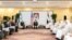 حکومەتی ئەفغانستان و تاڵیبان، لە قۆناغی بەرایی دانوستاندنەکانیاندان لە دۆحە، پایتەختی قەتەر وەک هەوڵێک بۆ گەیشتن بە ڕێککەوتنێک بۆ کۆتاییهێنان بە 19 ساڵی خوێنڕشتن لە ئەفغانستاندا.